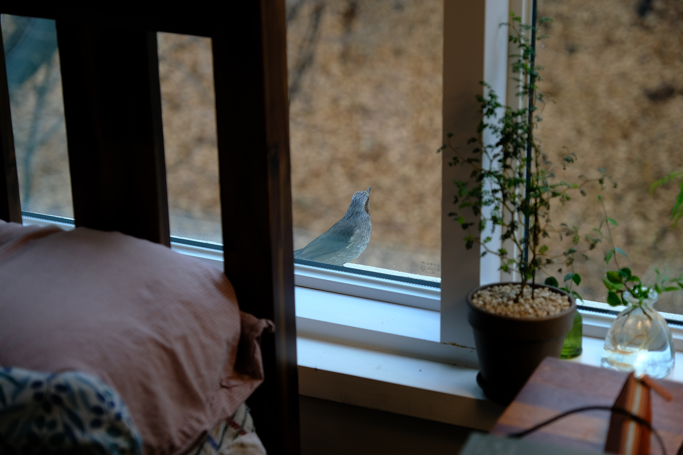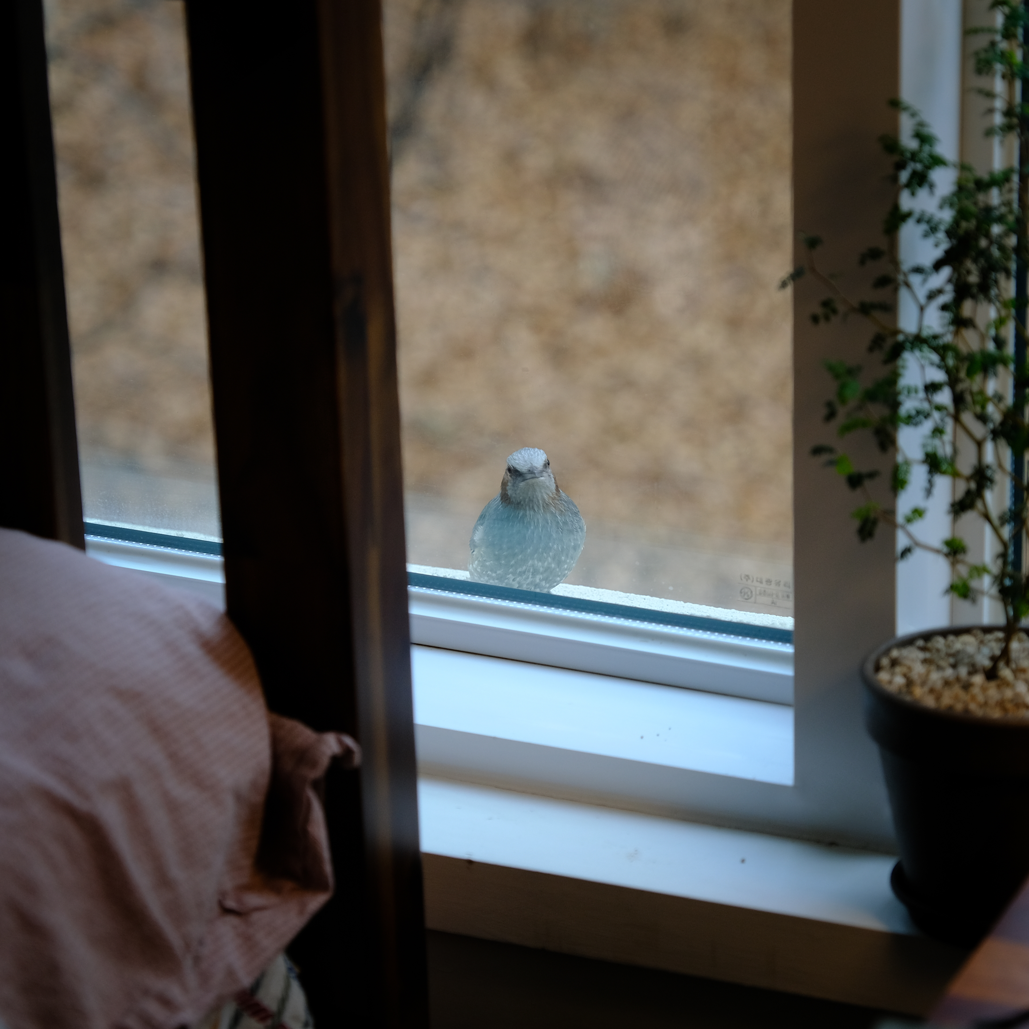 대개는 먹이를 물고 황급히 날아가버리는데, 이 직박구리 녀석은 한참 머물면서 집안을 살폈다. 혹시 고마운 걸까?