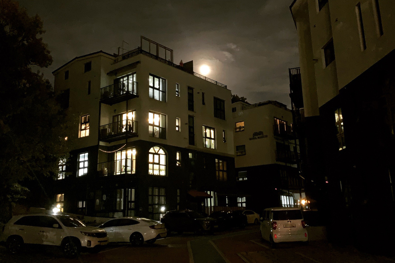 저기 우리 집 지붕 위에 달 올라가는 거 보이지?